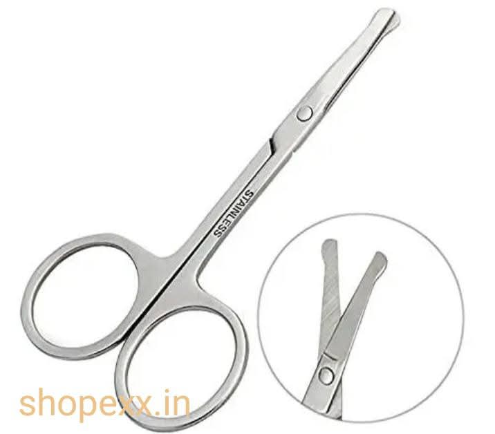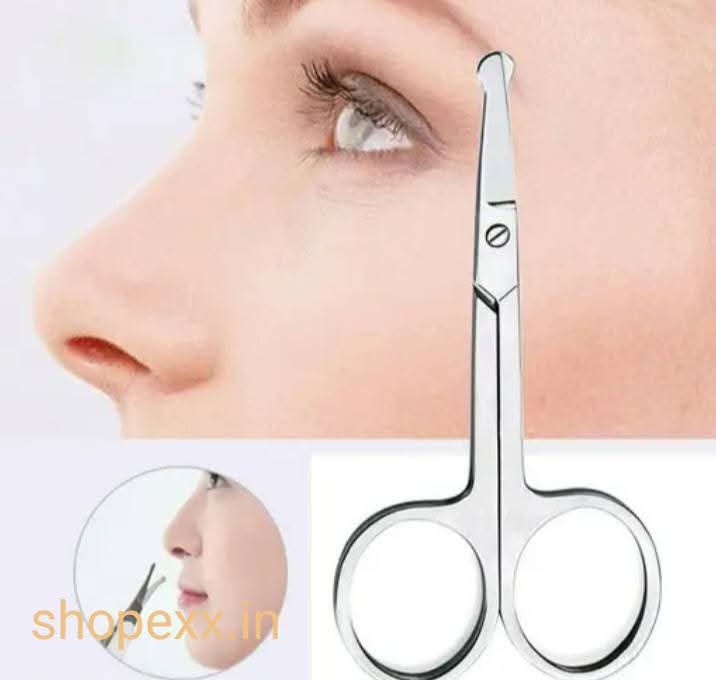 Product Name: Combo of 2 Scissors | Eyebrow Scissors and Nose Hair Trimmer Facial Hair Small Grooming Scissors For Men Women | Curved and Rounded Safety Tip | Sliver Colour
