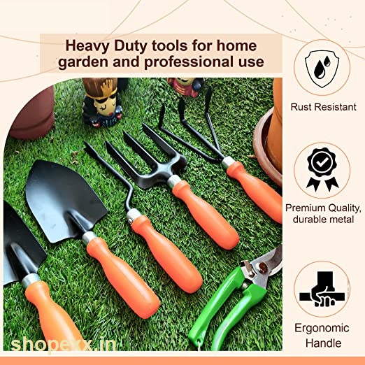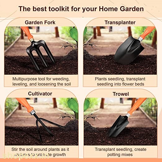 Essential gardening tools for home use or heavy duty and professional use with ergonomic handles for planting applications. This garden tool box combo is specially designed for comfortable use with better grip.
