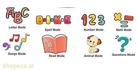 💻 Multi modes - Ask Mode-Search the letter, (it will speak out the letters - which the child needs to press on the keyboard. Singing mode - sings in-built songs. Music mode - plays music with alphabets. quiz mode - computer asks a numeric question and kids have to answer, this helps sharpen the mathematical ability of the child.