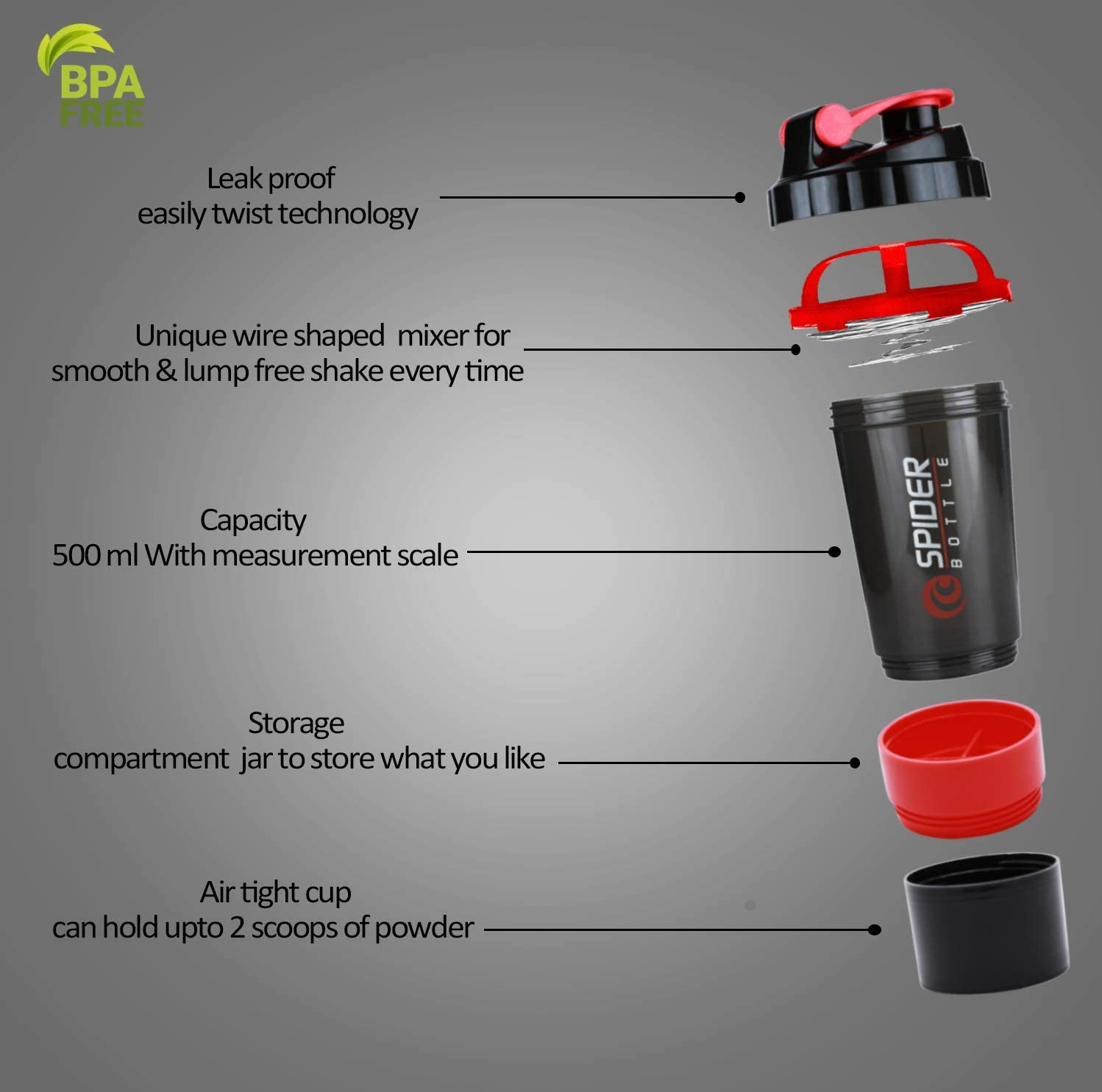 Spider Special Designed Gym Shaker | Sipper | Protein Carry Bottle/Protein Shaker Bottle & Gym Water Bottle | Gym Shaker Accessories
